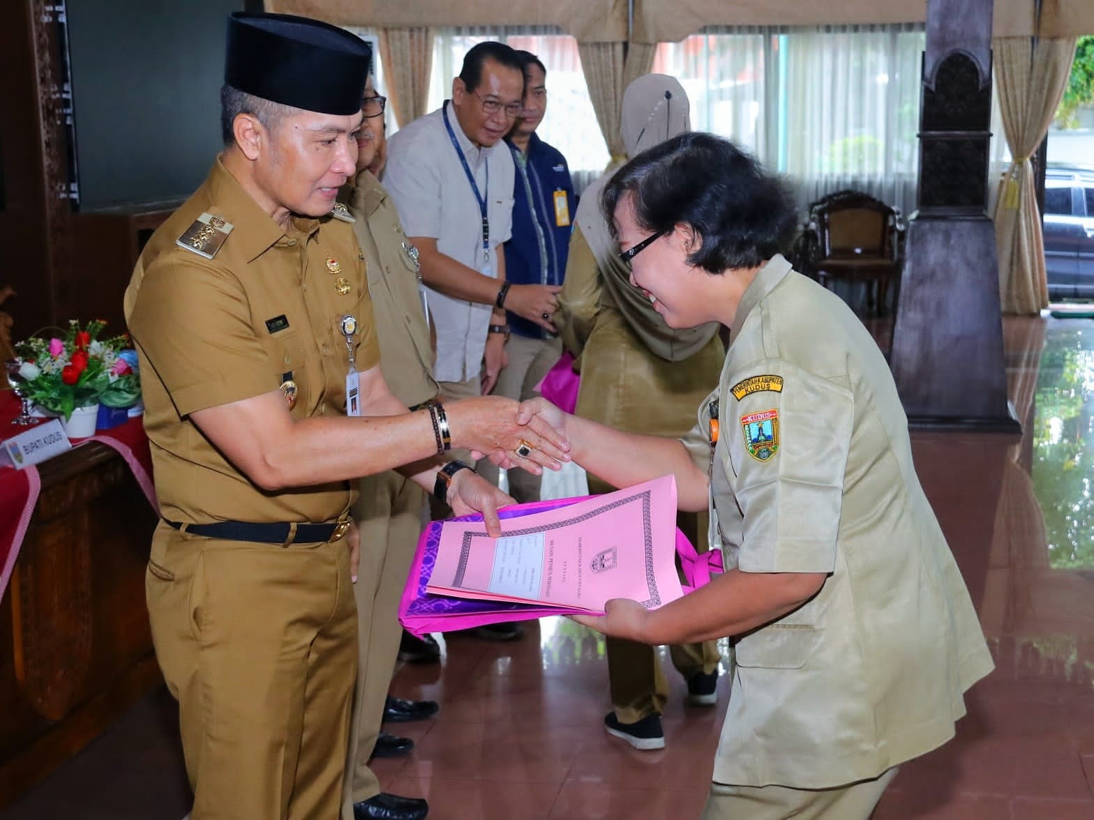 “Nasihat dan masukan dari panjenengan sangat penting untuk mengarahkan anak dan cucu menuju masa depan yang cerah,” ucapnya saat menyerahkan SK Pensiun PNS karena Batas Usia Pensiun (BUP) TMT 1 Maret 2023 di Pendapa Kabupaten Kudus, Senin (27/2).