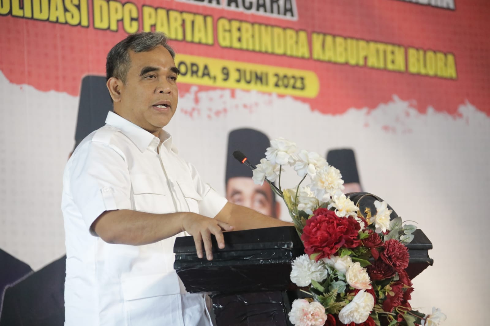 Sekjen Partai Gerindra Ahmad Muzani menghadiri konsolidasi politik bersama pengurus ranting, PAC, dan DPC Gerindra se-Kabupaten Grobogan dan Kabupten Blora, Jawa Tengah, Jumat (9/6).