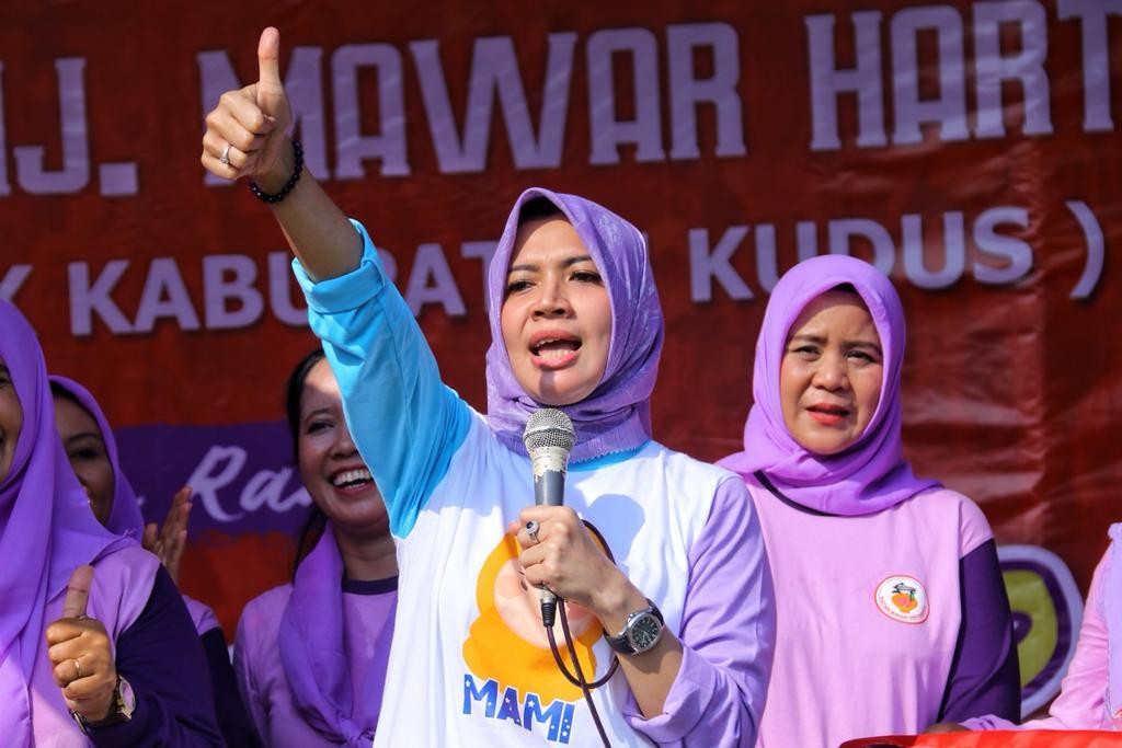 RILISJATENG.COM– Ketua TP PKK Kabupaten Kudus, Mawar Hartopo, menghadiri acara senam bersama Ikatan Bidan Indonesia (IBI) yang diselenggarakan dalam rangka memperingati Hari Ulang Tahun IBI yang ke-72. Kegiatan tersebut berlangsung di Alun-alun Simpang 7 Kudus dan diikuti oleh 900 peserta yang terdiri dari seluruh anggota IBI cabang Kudus. Minggu (25/6)