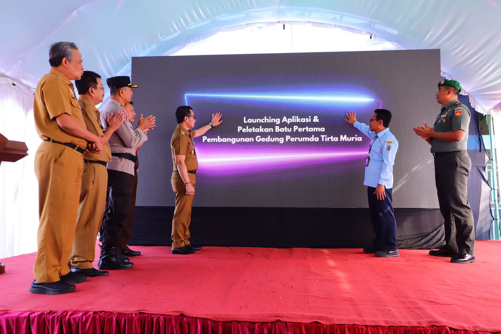 Usai meluncurkan aplikasi, Hartopo juga meletakkan batu pertama dalam pembangunan gedung pelayanan Perumda. Bupati merespons positif pembangunan untuk integrasi pelayanan.
